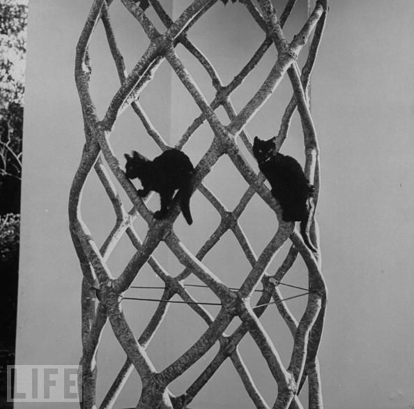 I recently came across an image of Axel Erlandson standing next to an amazing shaped tree. I did a little searching and found out that Erlandson created what was once known as The Tree Circus in Scotts Valley, California. Unfortunately, The Tree Circus went into disrepair after Erlandson's death and multiple owners. Some trees still exist at Gilroy Gardens in California. Before the Tree Circus was dismantled and destroyed, Mark Primack took the time to photograph and record the specimens. You can view his website here. I found some pictures from when the Tree Circus was featured in Life magazine, but there was no accompanying article.